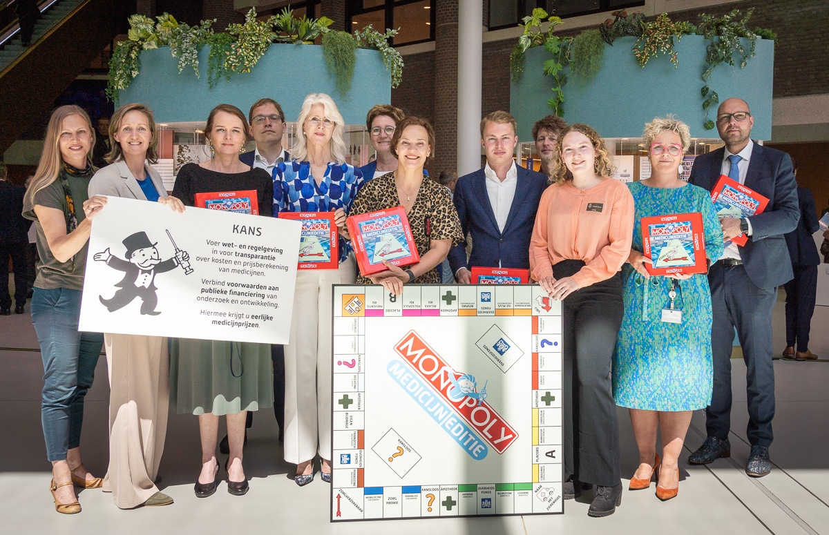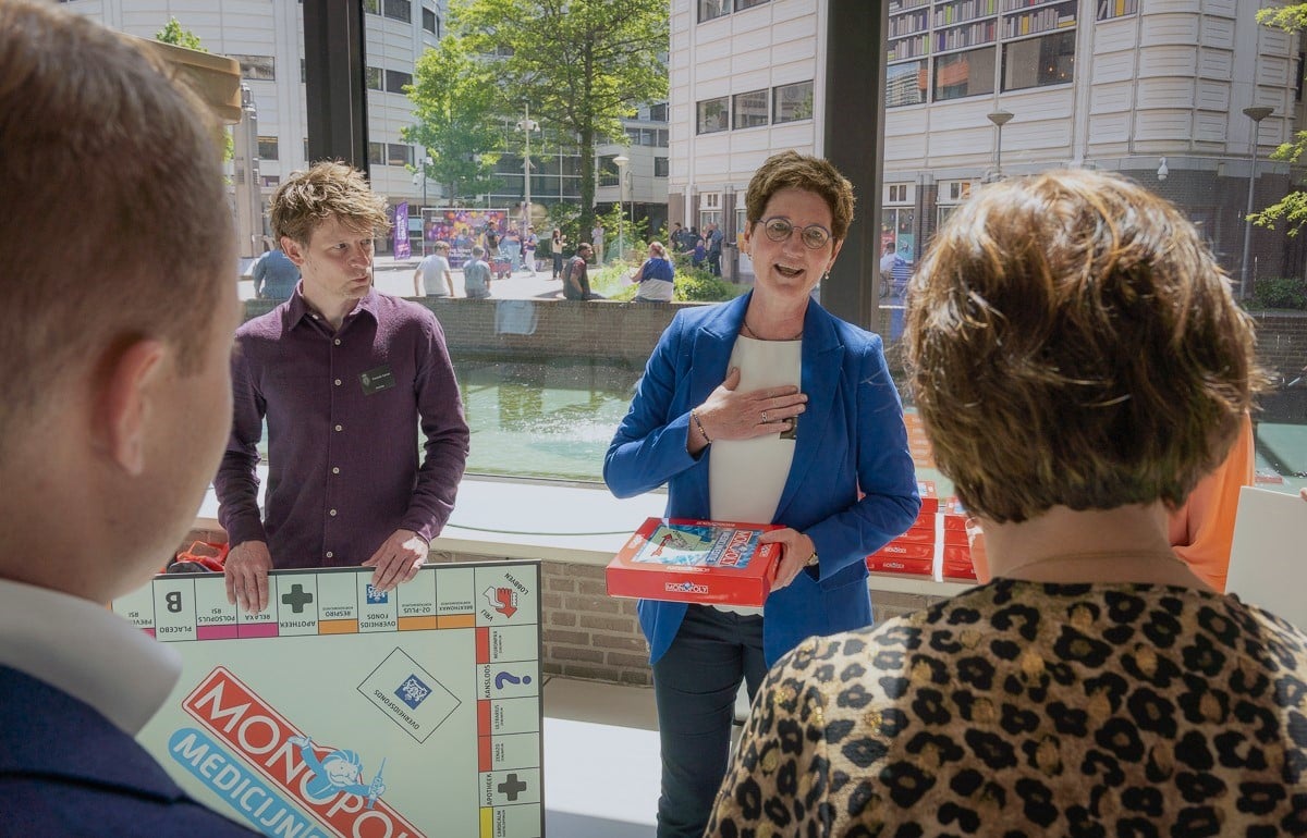 In een van de campagnevideo’s presenteert Roel Maalderink het (fictieve) spel Monopoly, de Medicijn Editie. Als afsluiter van de campagne reikten we Monopoly-speldozen uit aan de Kamerleden. In de dozen zit een verzameling van onze campagnematerialen, waaronder een infographic en Q&A.